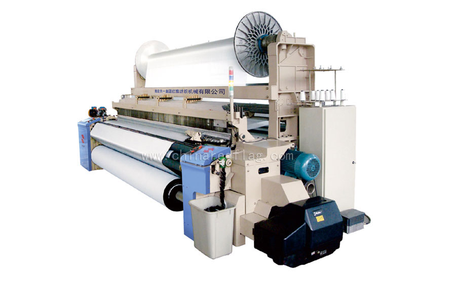 我司新研發(fā)的JA92上下雙重織軸高檔寬幅噴氣織機(jī)是針對(duì)紡織企業(yè)開(kāi)發(fā)高附加值雙面織物、色織物研發(fā)而成,該產(chǎn)品具有筘幅寬、轉(zhuǎn)速高、織物范圍廣、品種適應(yīng)性強(qiáng)(可應(yīng)用于棉、毛、絲、麻、化纖等各個(gè)紡織行業(yè))、織造效率高、自動(dòng)化程度高、性能穩(wěn)定可靠等特點(diǎn),為紡織企業(yè)解決了開(kāi)發(fā)高附加值雙面織物時(shí)遇到的漿紗和織造的難題,是紡織企業(yè)開(kāi)發(fā)高檔織物產(chǎn)品(高檔單面亮光雙面滌彈絲遮光布、高檔家紡布、色織布)提高產(chǎn)品質(zhì)量、降低勞動(dòng)成本、減少環(huán)境污染、提高經(jīng)濟(jì)效益的設(shè)備。性能指標(biāo):公稱(chēng)筘幅為190-360cm(可根據(jù)用戶(hù)需求生產(chǎn)相應(yīng)的筘幅),上、下織軸盤(pán)片直徑φ800mm(或φ914mm)、主軸轉(zhuǎn)速400-750rpm(實(shí)際車(chē)速根據(jù)織物規(guī)格確定)、筘幅可調(diào)范圍0-800mm、適用織造長(zhǎng)絲或短纖、卷布直徑550mm、上下織軸經(jīng)紗雙伺服控制、電子多臂開(kāi)口(16片)、電子卷?。C(jī)械卷取)、10.4〞觸摸液晶顯示智能電腦控制 。